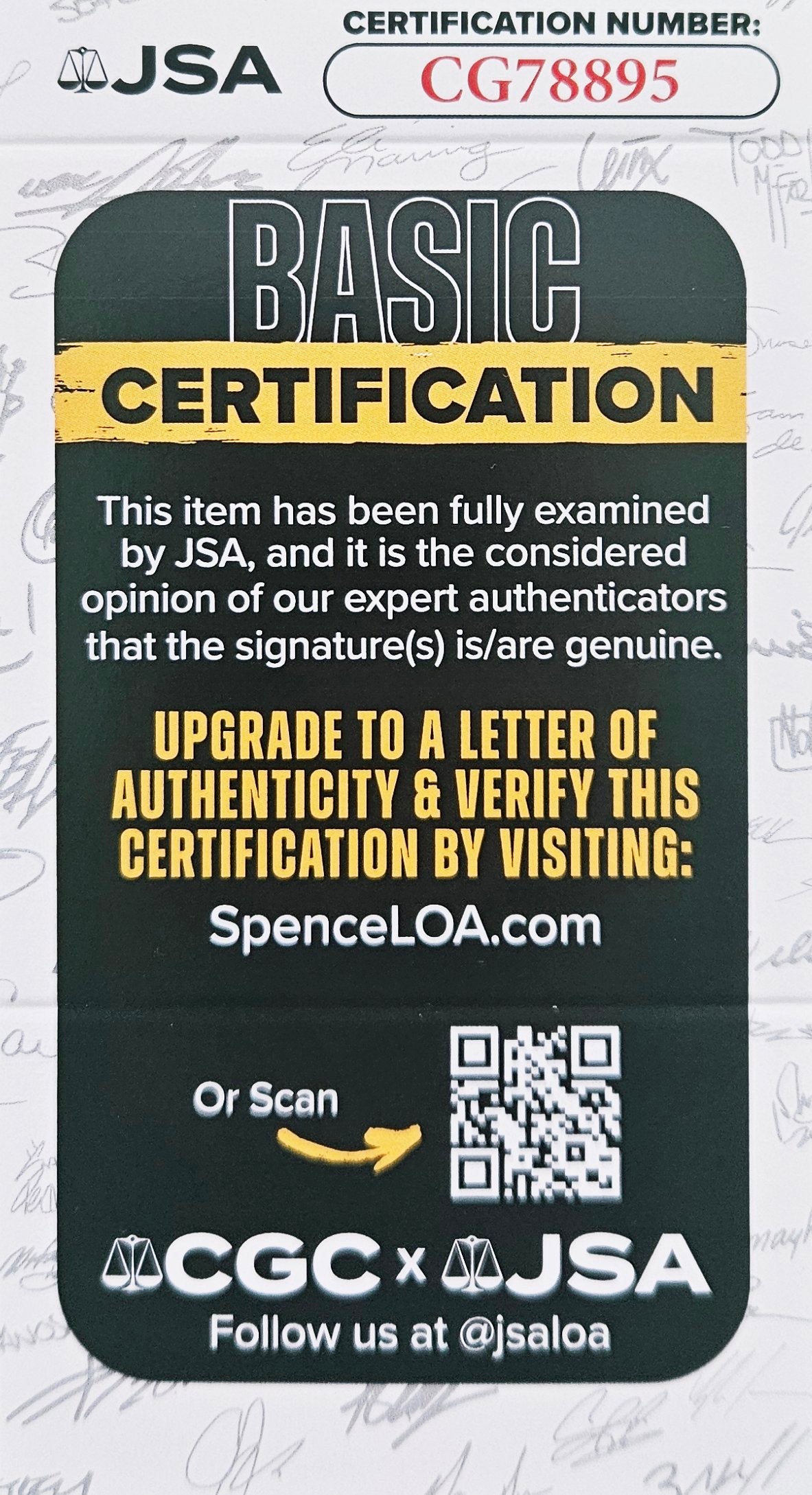 Autographed item comes with Certificate Of Authenticity (COA) Card from James A. Spence JSA