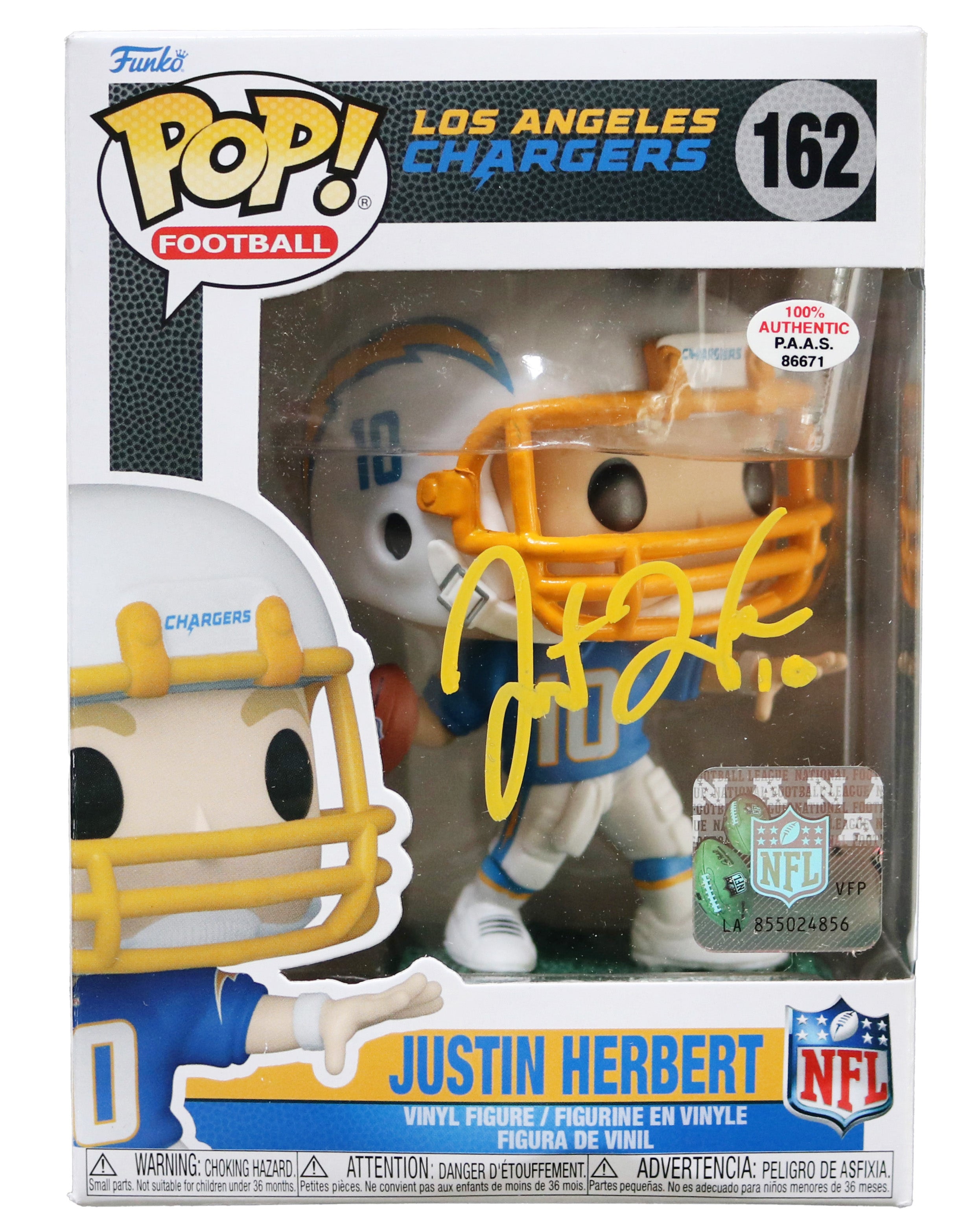 Justin Herbert Los Angeles Chargers Signed Autographed NFL FUNKO POP #162 Vinyl Figure PAAS COA