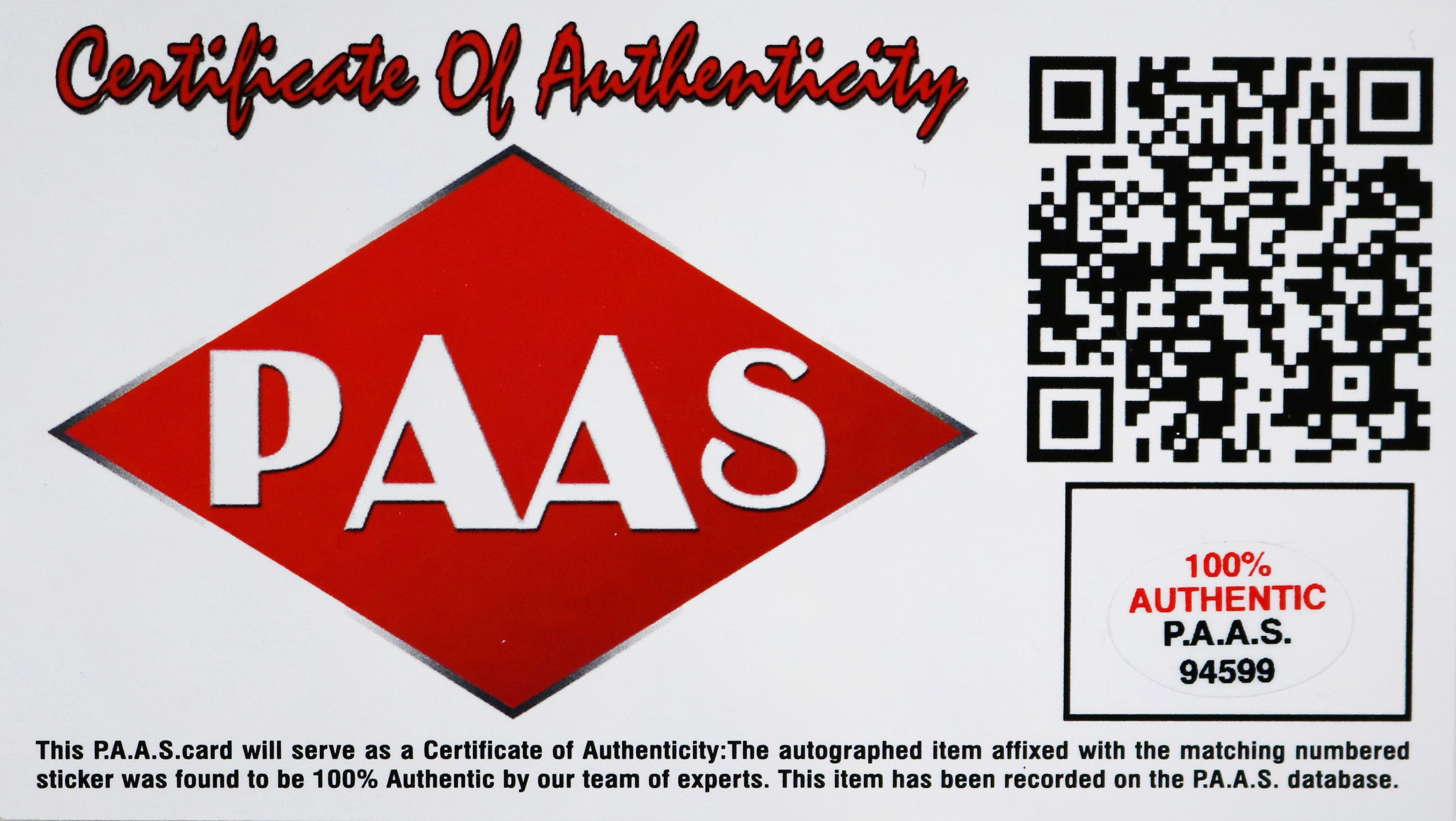 Autographed item comes with Certificate Of Authenticity (COA) Card from PAAS Professional Autograph Authentication Services