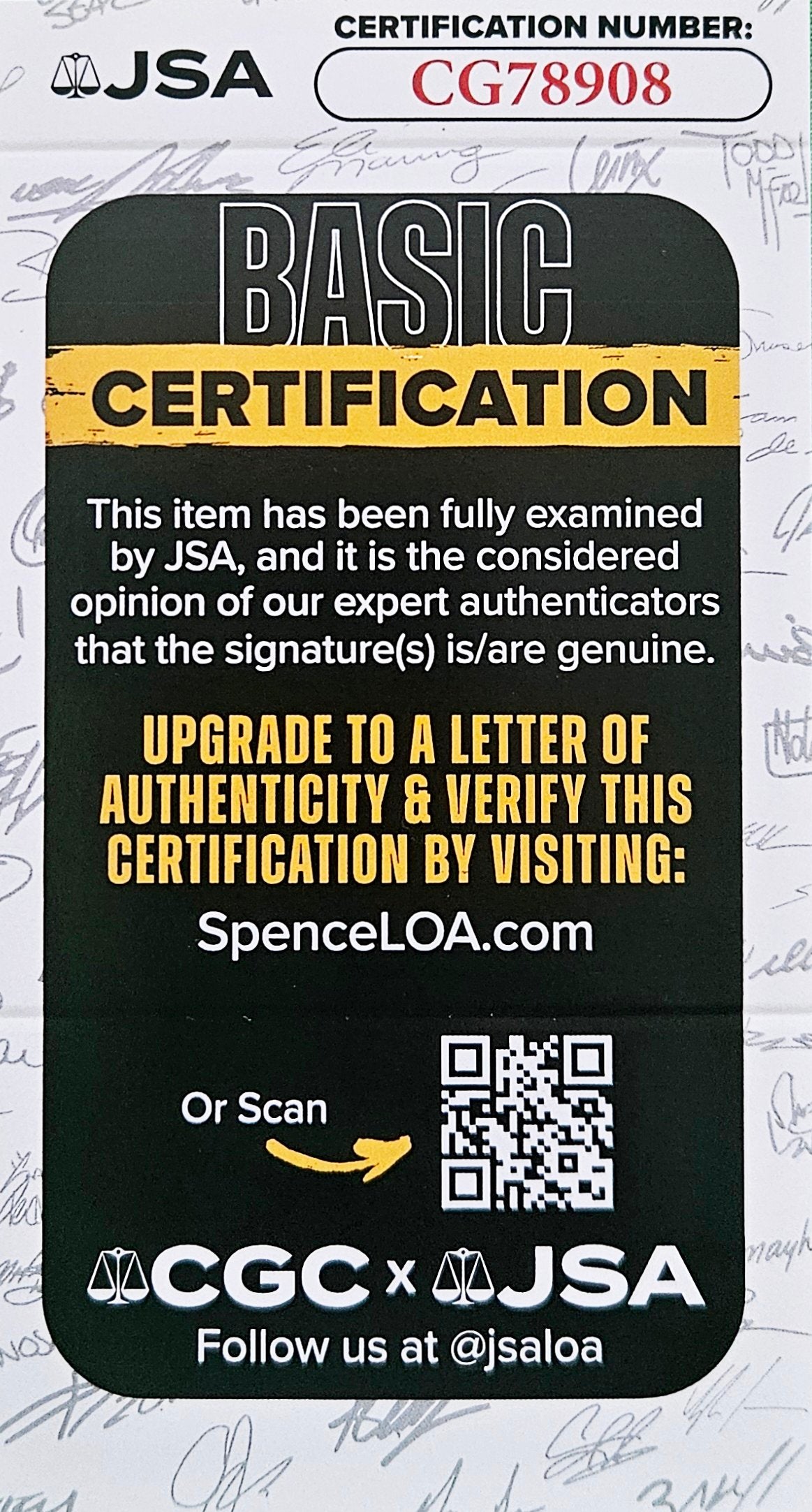 • Autographed item comes with Certificate Of Authenticity (COA) Card from James A. Spence JSA
