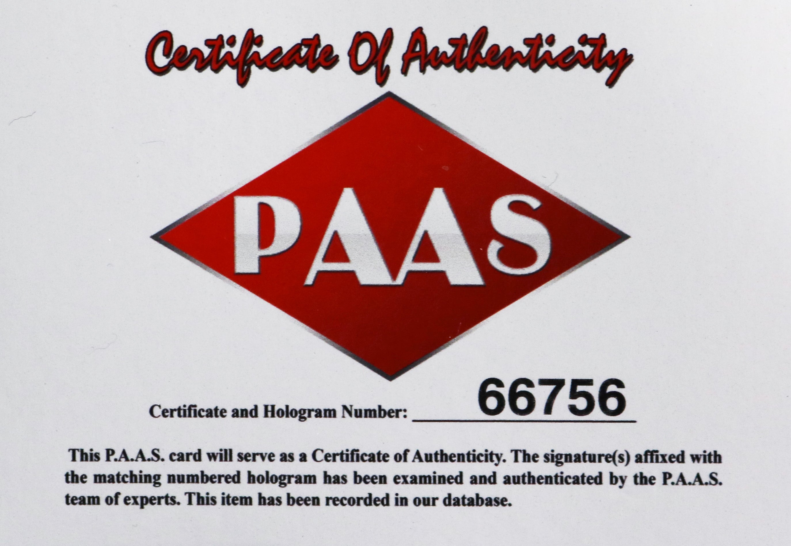 • Autographed item comes with Certificate Of Authenticity (COA) Card from PAAS Professional Autograph Authentication Services