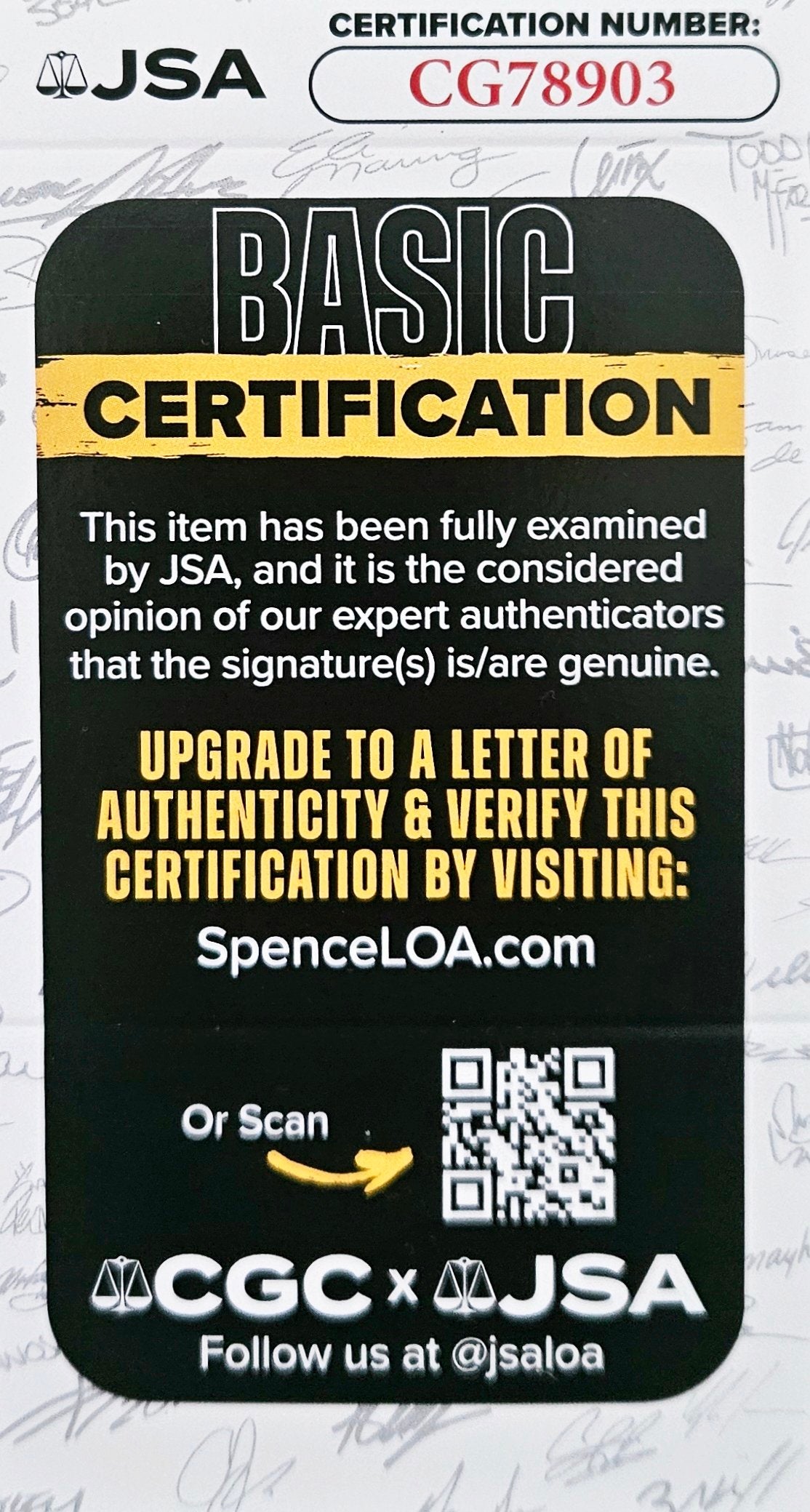 Autographed item comes with Certificate Of Authenticity (COA) Card from James A. Spence JSA