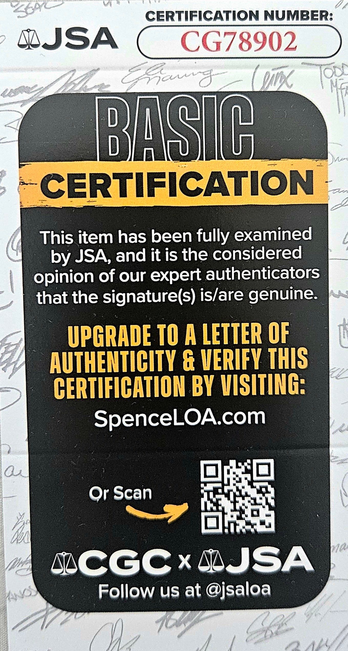 Autographed item comes with Certificate Of Authenticity (COA) Card from James A. Spence JSA
