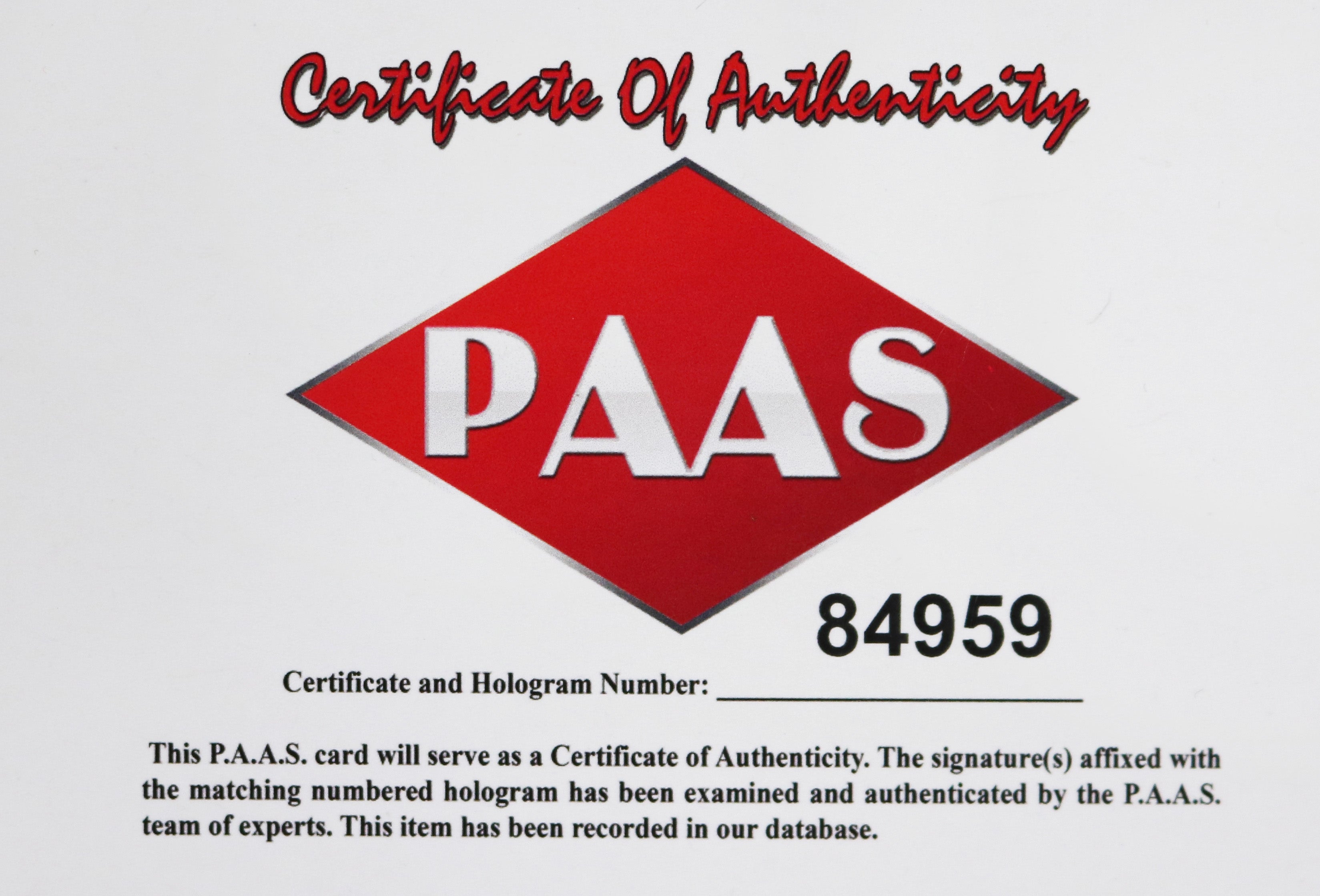 Autographed item comes with Certificate Of Authenticity (COA) Card from PAAS Professional Autograph Authentication Services