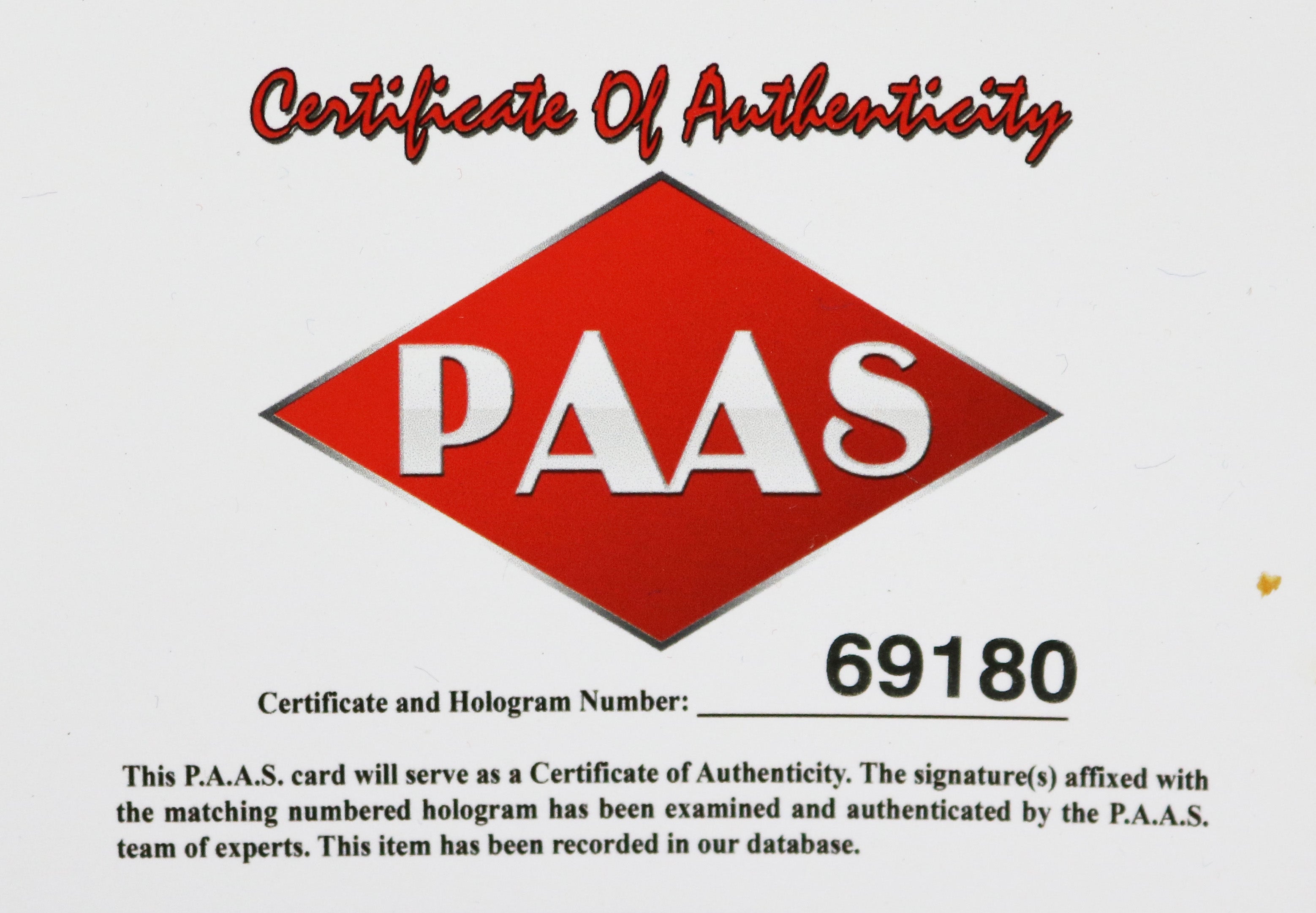 Autographed item comes with Certificate Of Authenticity (COA) Card from PAAS Professional Autograph Authentication Services