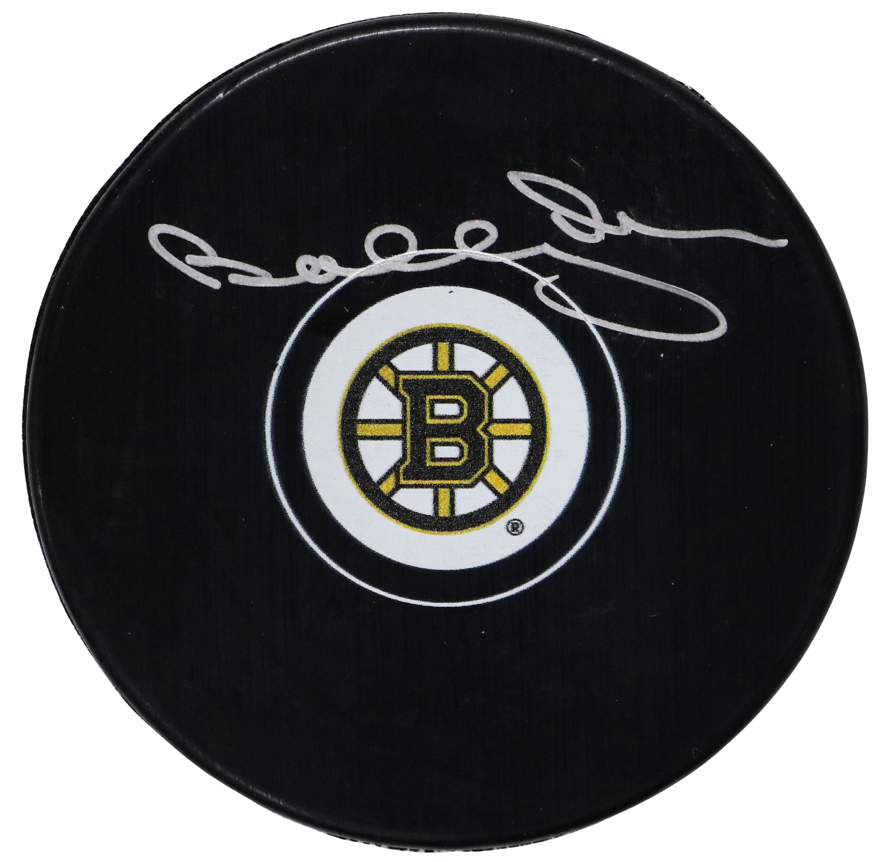 Bobby Orr Boston Bruins Signed Autographed Bruins Logo NHL Hockey Puck with Display Holder Global COA