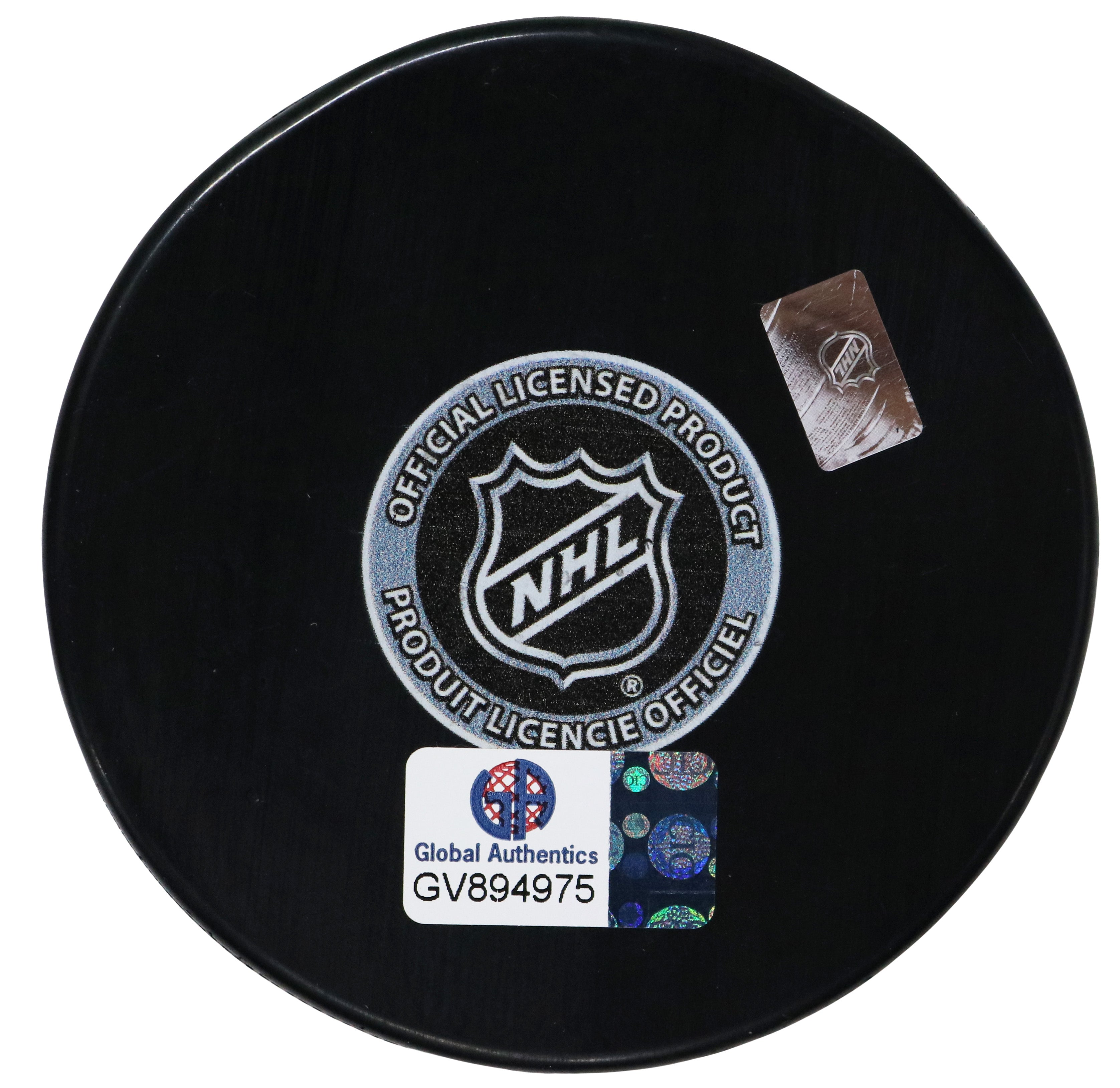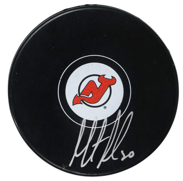Martin Brodeur New Jersey Devils Signed Autographed Devils Logo NHL Hockey Puck Global COA with Display Holder