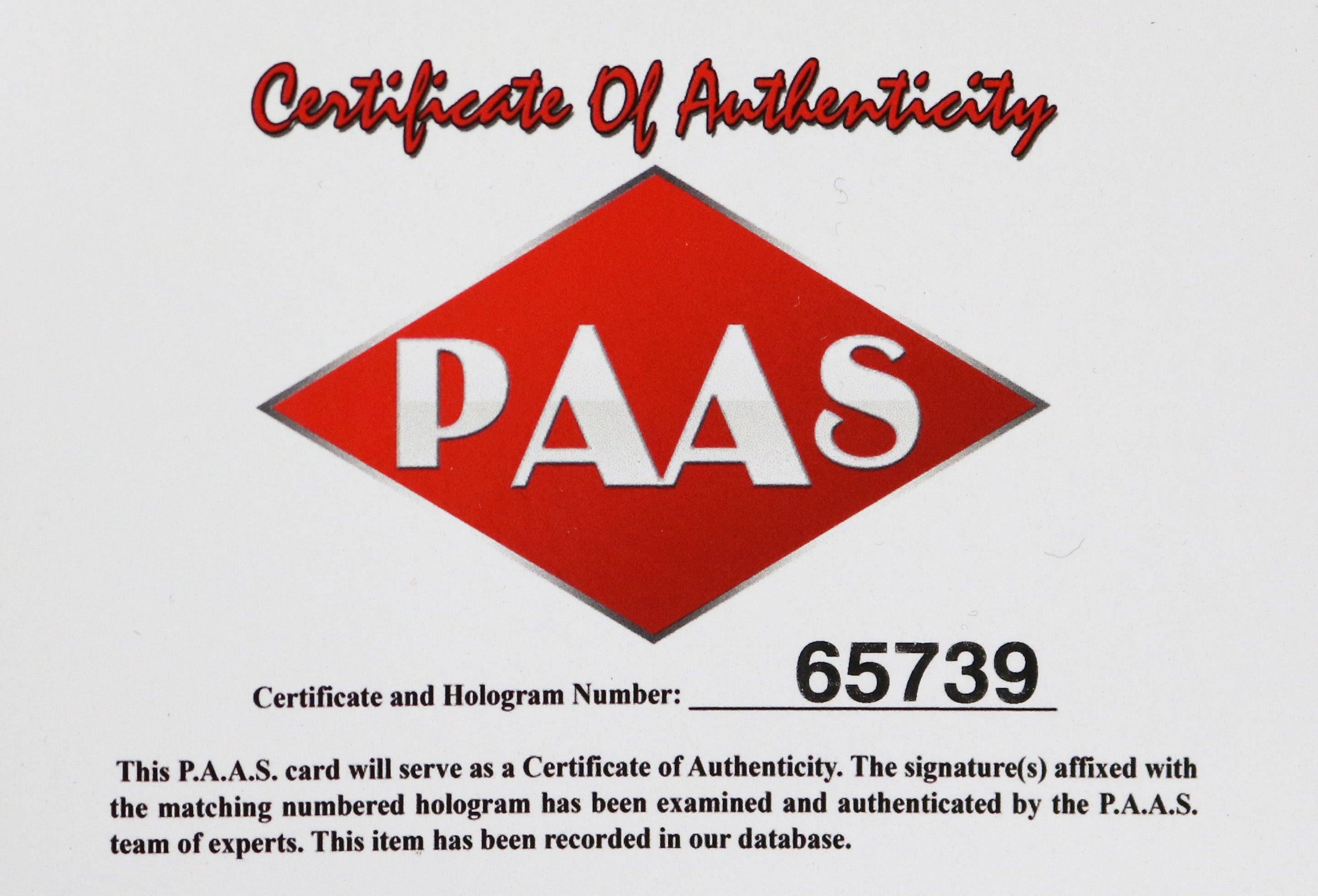 Autographed item comes with Certificate Of Authenticity (COA) Card from PAAS Professional Autograph Authentication Services