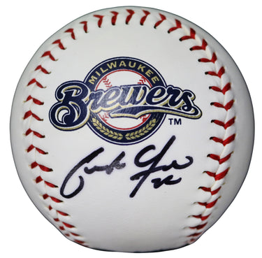 Christian Yelich Signed Autographed Rawlings Official Major League Milwaukee Brewers Logo Baseball Black Auto Global COA with Display Holder