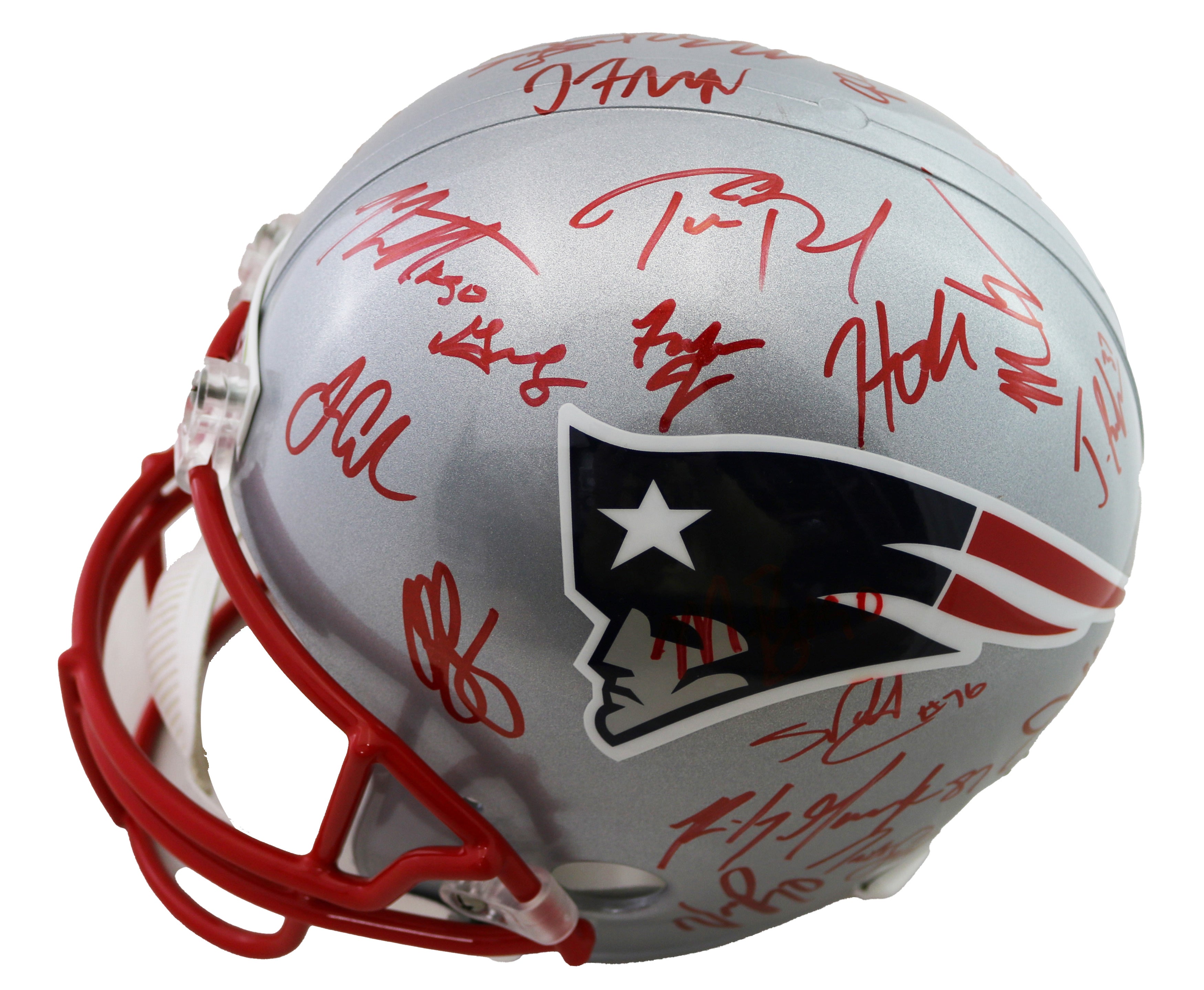 35 Total Signatures including Tom Brady, Bill Belichick, Rob Gronkowski, Julian Edelman, Legarrette Blount, Nate Solder, Dont'a Hightower, Malcolm Butler, Matthew Slater, Patrick Chung, Stephen Gostkowski and Others