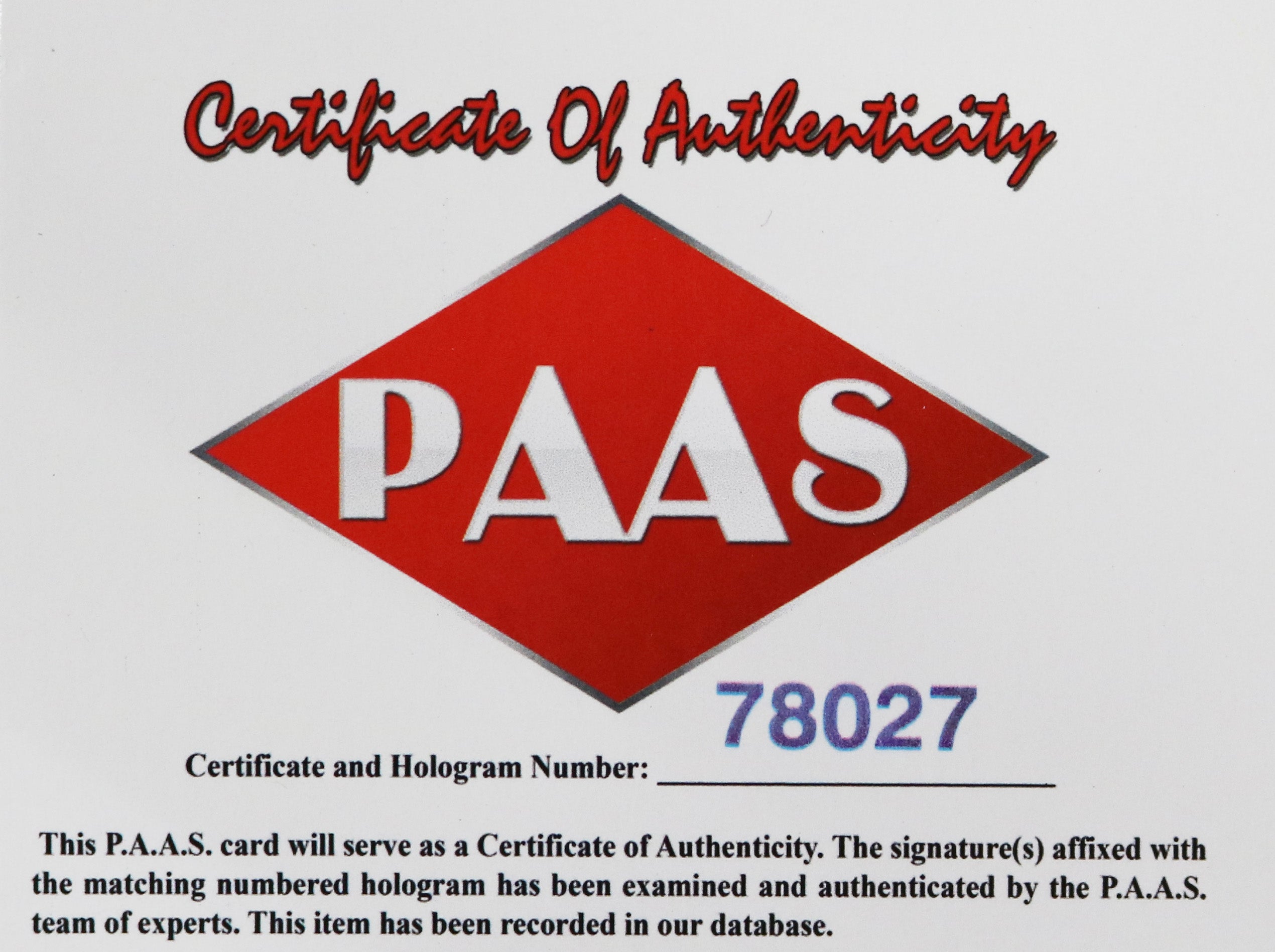 • Autographed Item comes with a Certificate of Authenticity (COA) Card from PAAS Professional Autograph Authentication Services