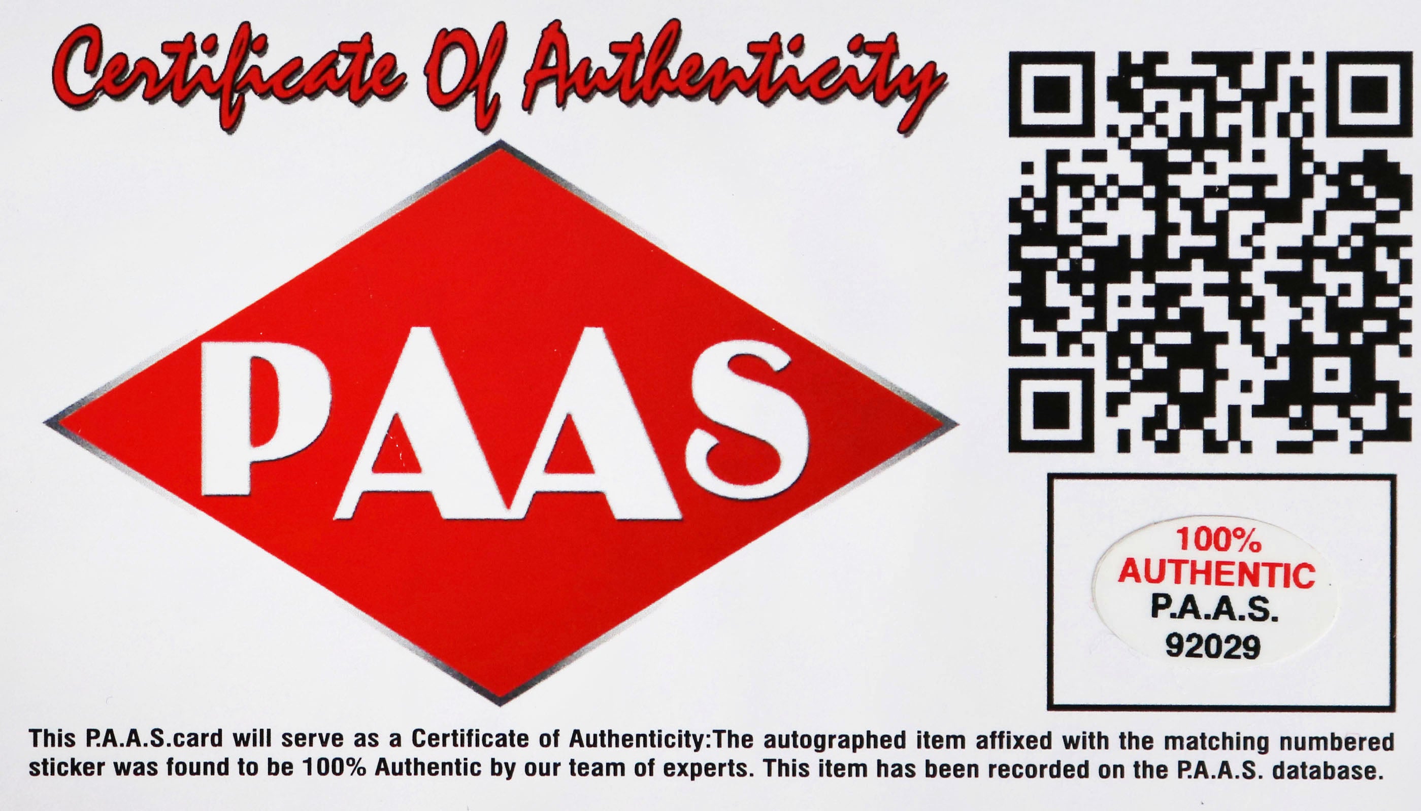 Autographed item comes with Certificate Of Authenticity (COA) Card from PAAS Professional Autograph Authentication Services