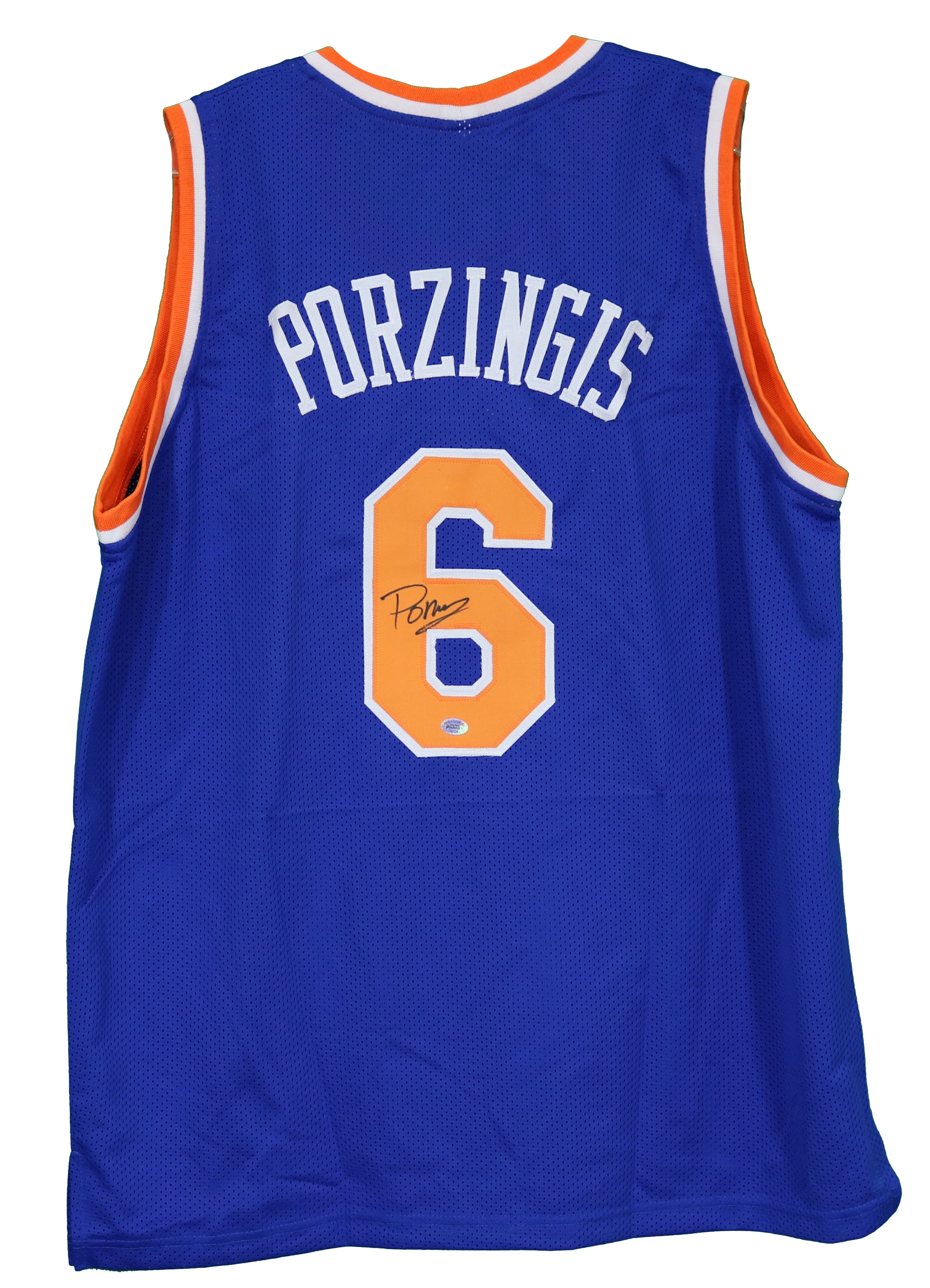 Kristaps Porzingis New York Knicks Signed Autographed Blue #6 Custom Jersey Pinpoint COA