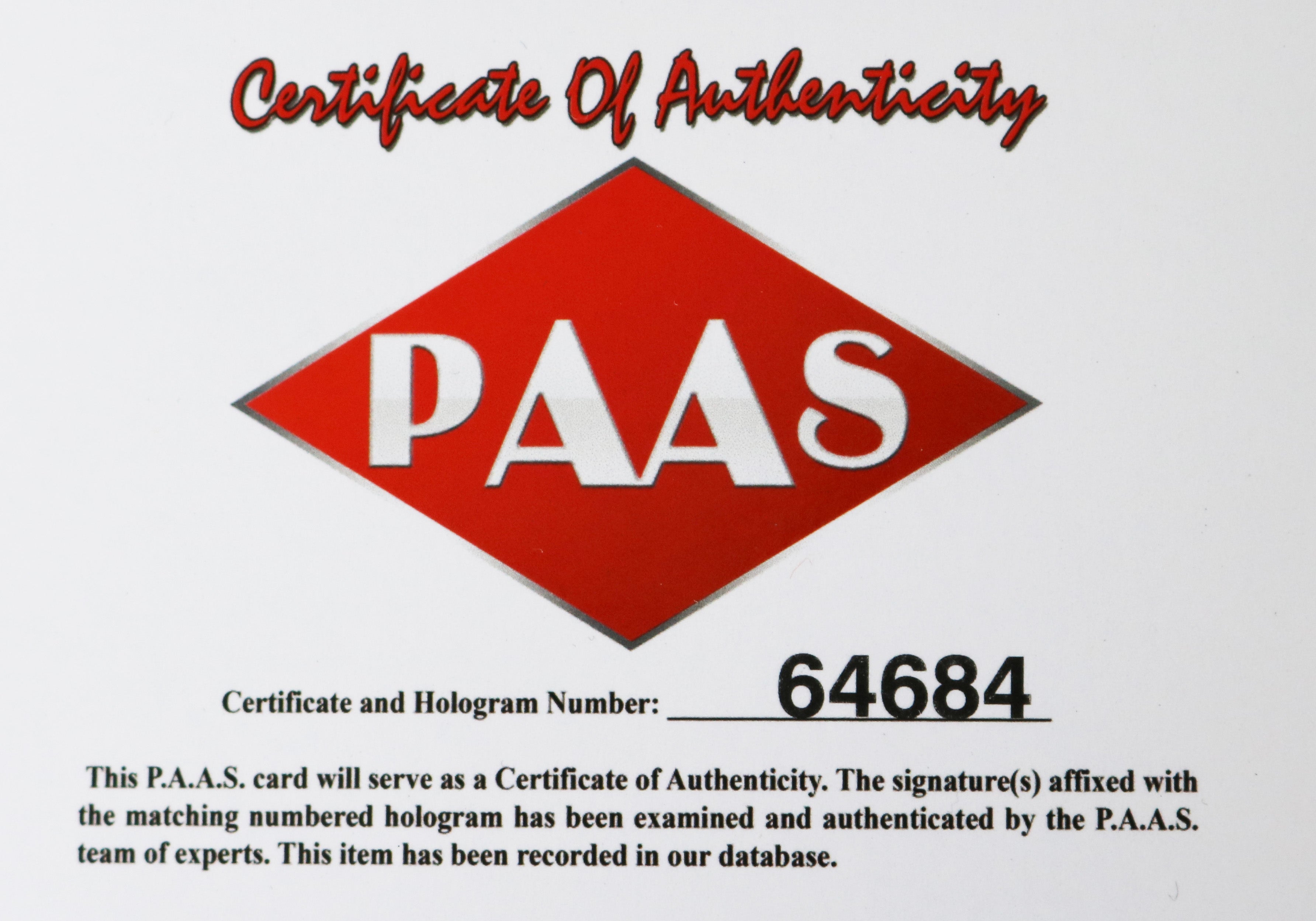 • Autographed item comes with Certificate Of Authenticity (COA) Card from PAAS Professional Autograph Authentication Services