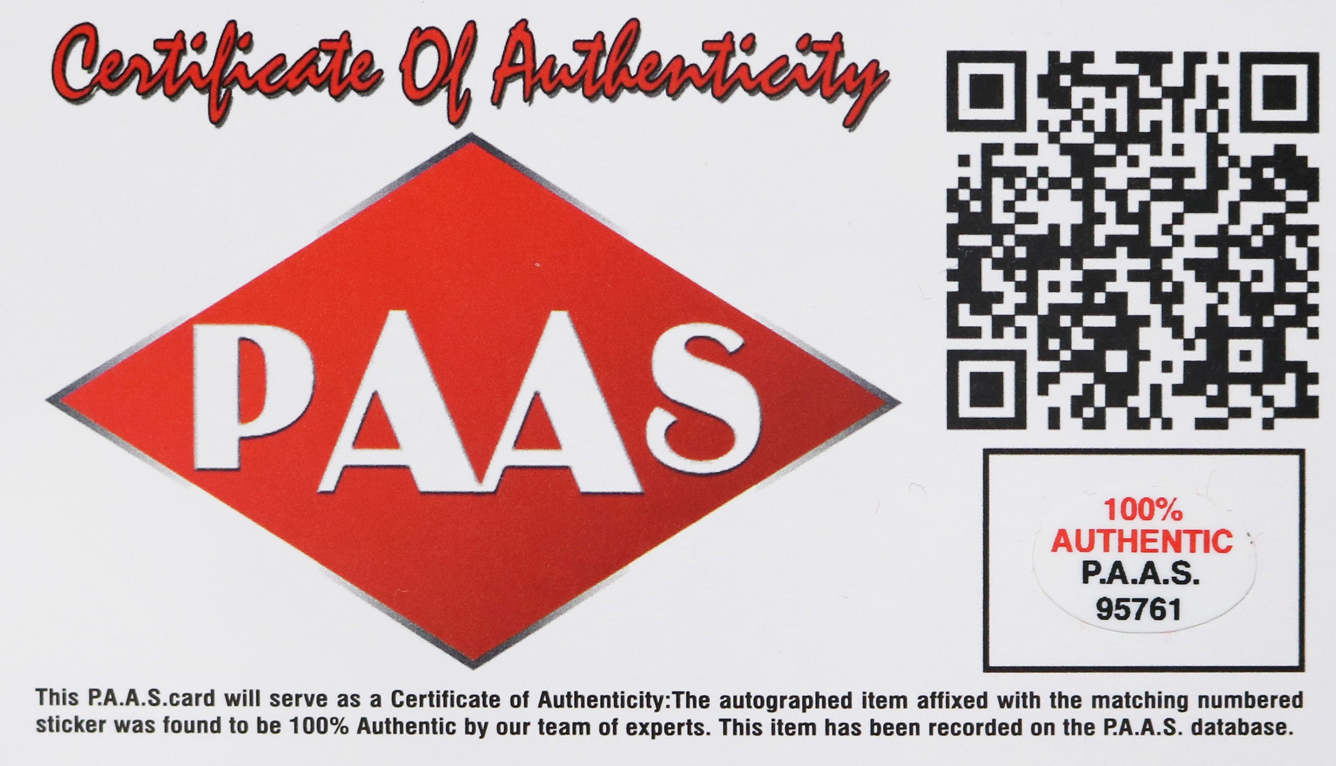 Autographed item comes with Certificate Of Authenticity (COA) Card from PAAS Professional Autograph Authentication Services