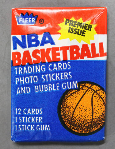 1986-87 Fleer Basketball Wax Pack from Full Hobby Box - Magic Johnson sticker on Back