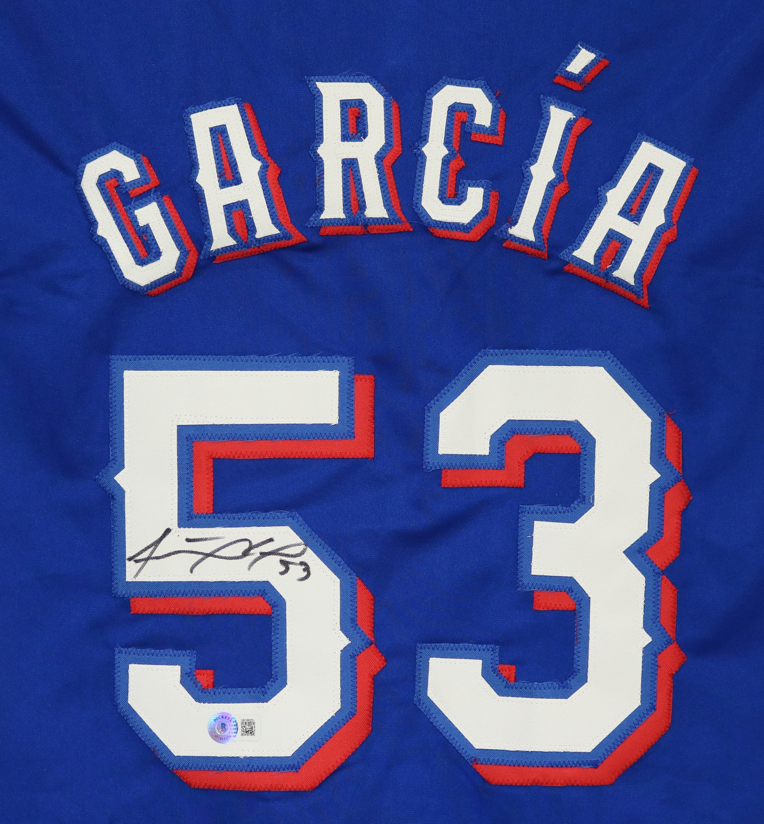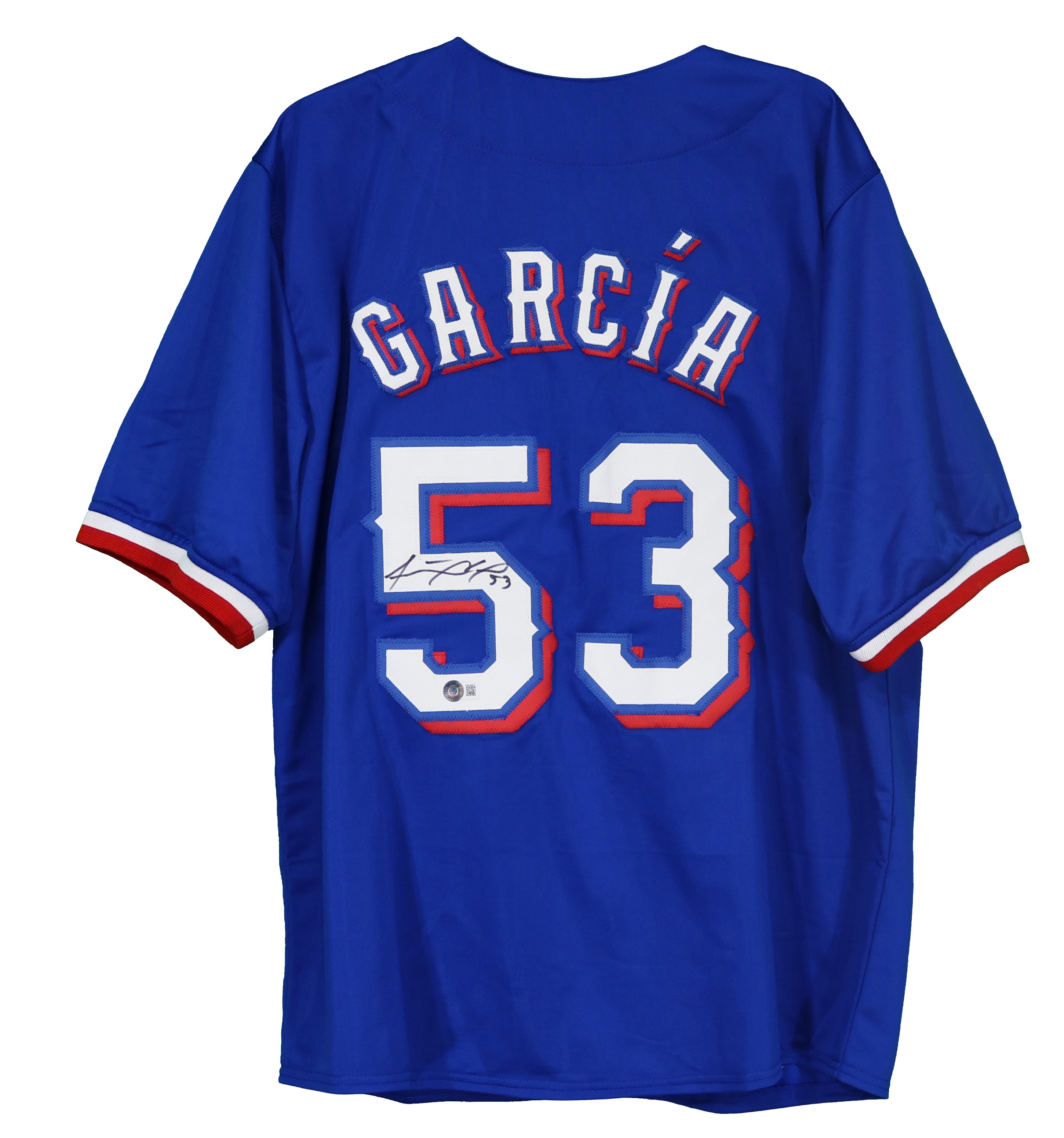 Adolis Garcia Texas Rangers Signed Autographed Blue #53 Custom Jersey Beckett Witness Certification