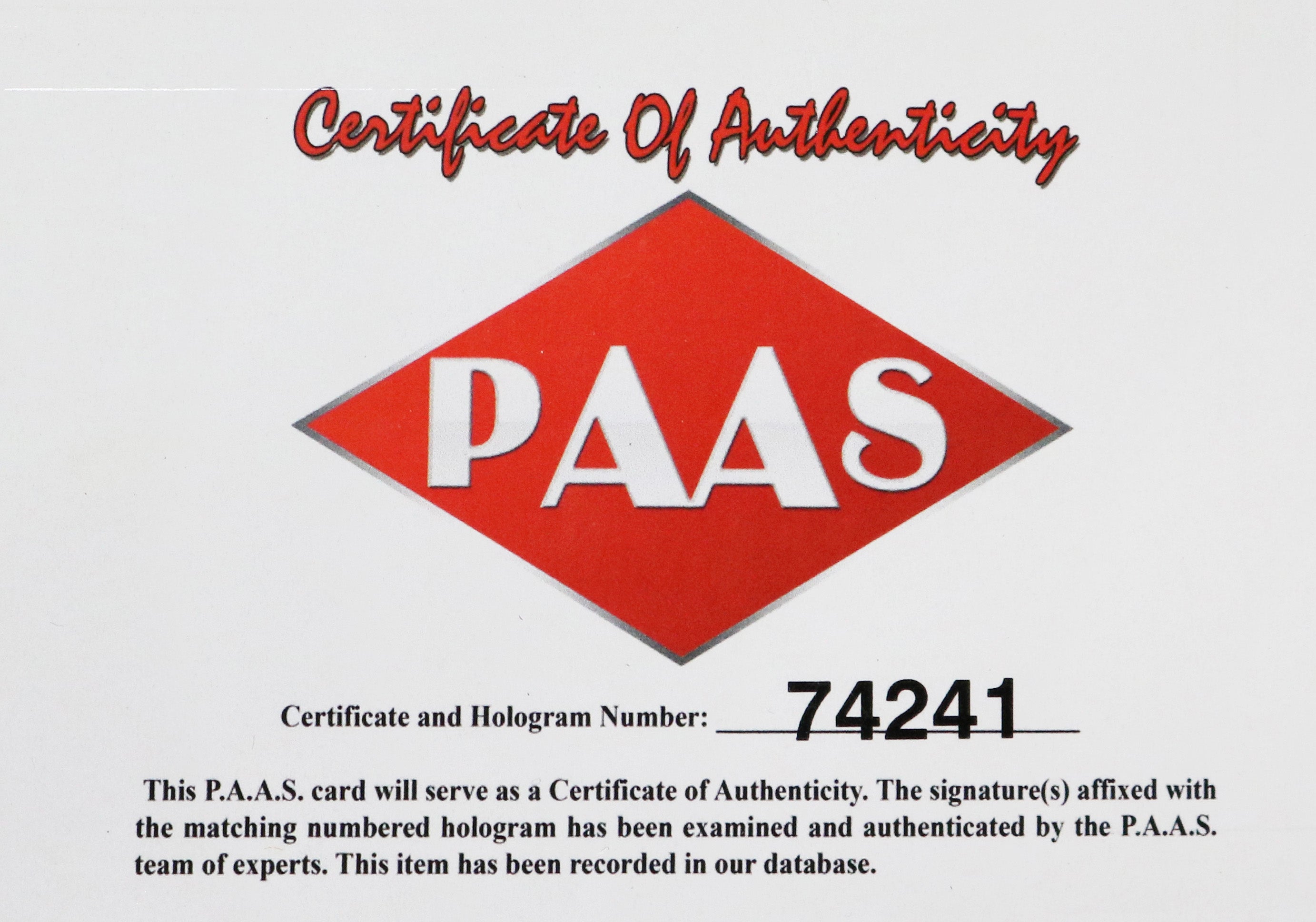 Autographed item comes with Certificate Of Authenticity (COA) Card from PAAS Professional Autograph Authentication Services