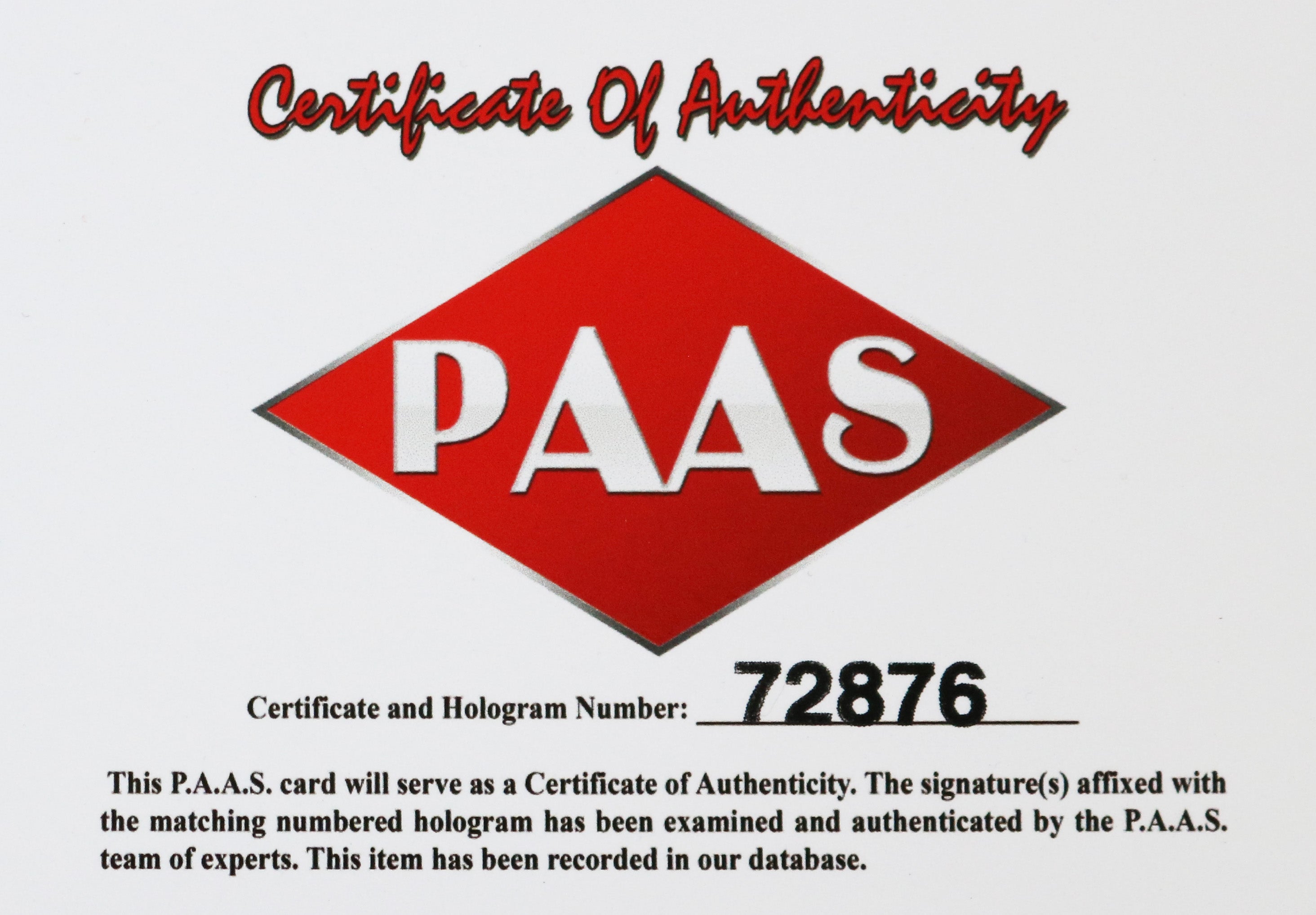 Autographed item comes with Certificate Of Authenticity (COA) Card from PAAS Professional Autograph Authentication Services
