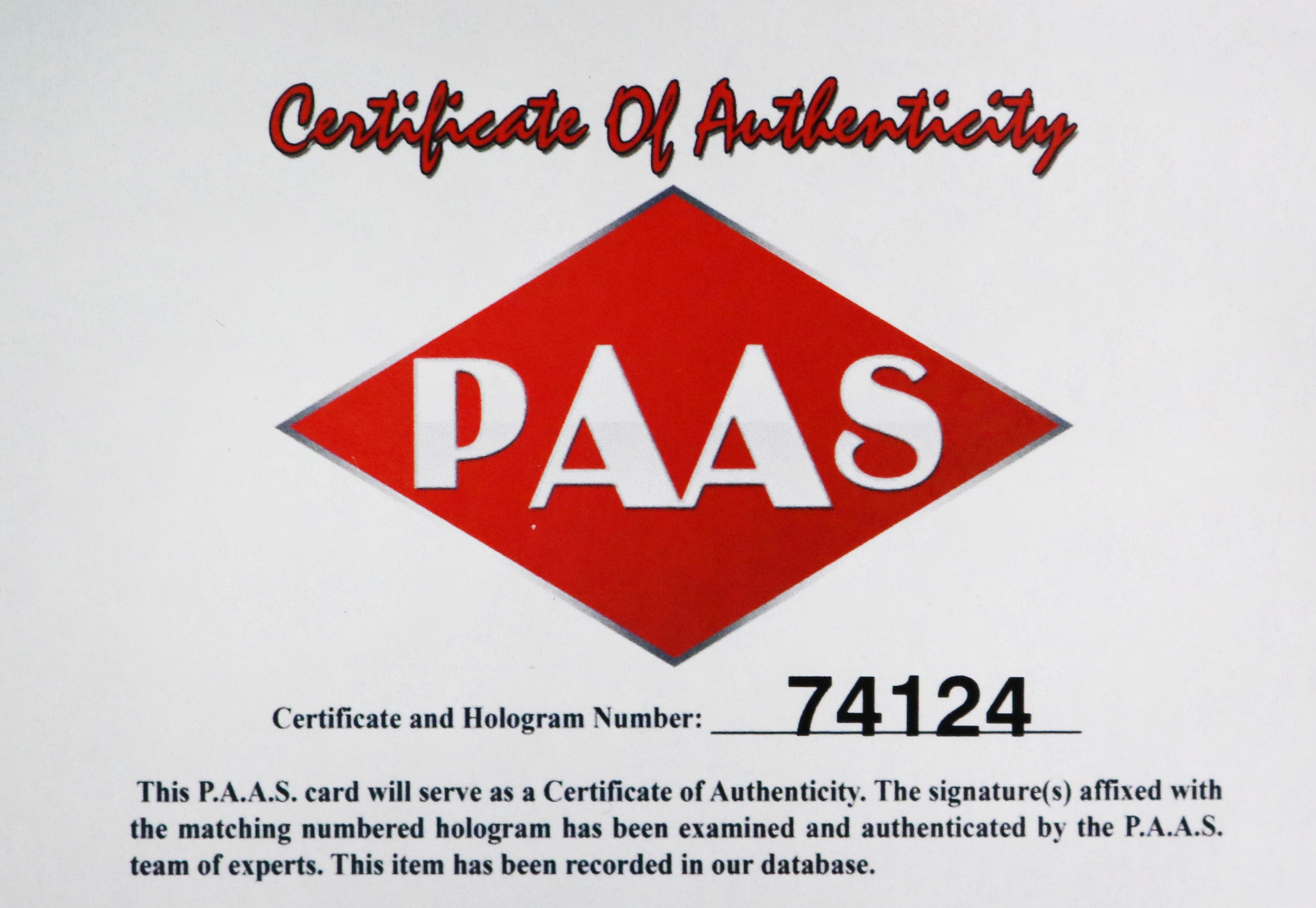 • Autographed Item comes with Certificate of Authenticity (COA) Card from PAAS Professional Autograph Authentication Services