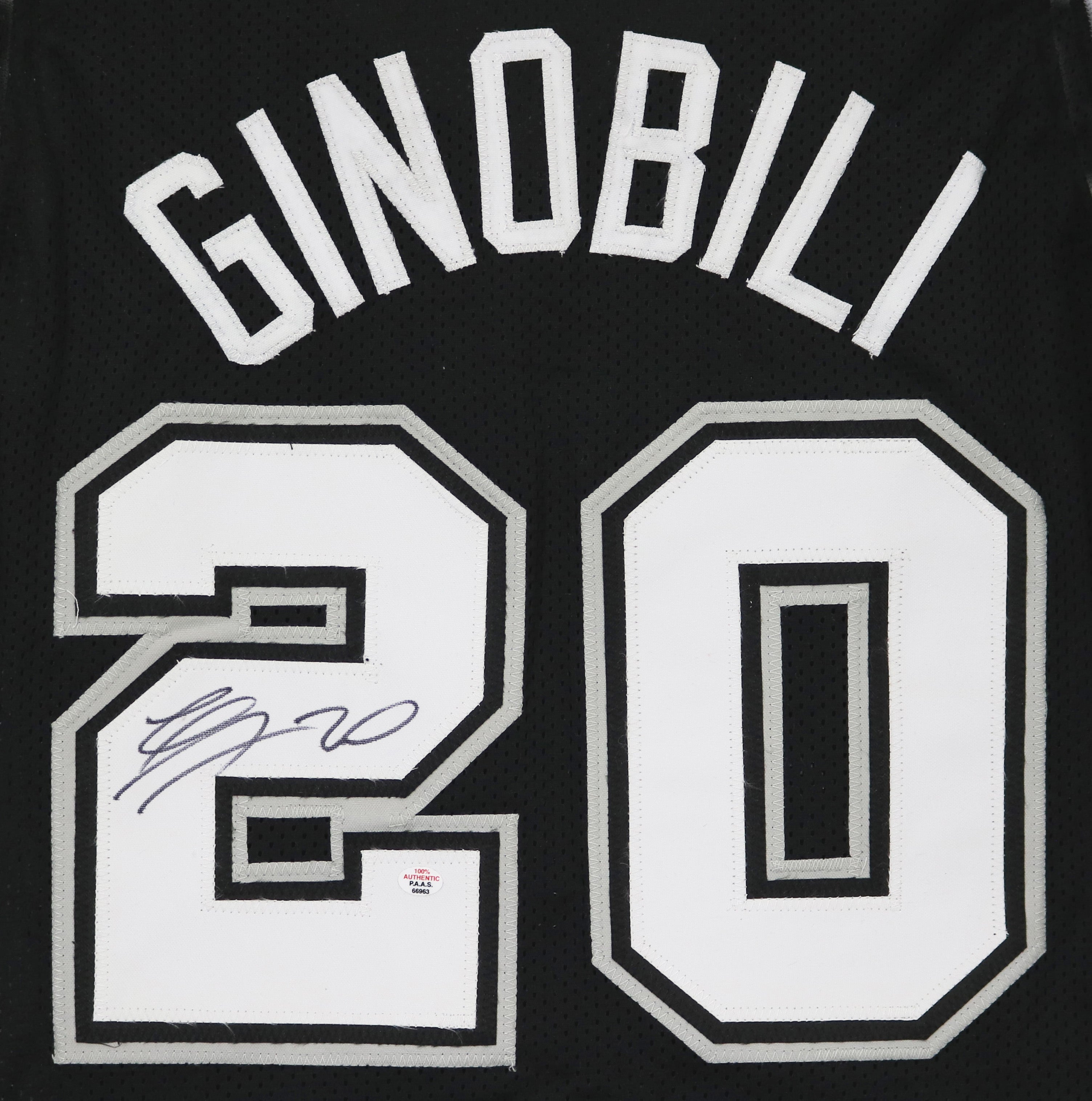 Manu Ginobili San Antonio Spurs Signed Autographed Black #20 Custom Jersey PAAS COA