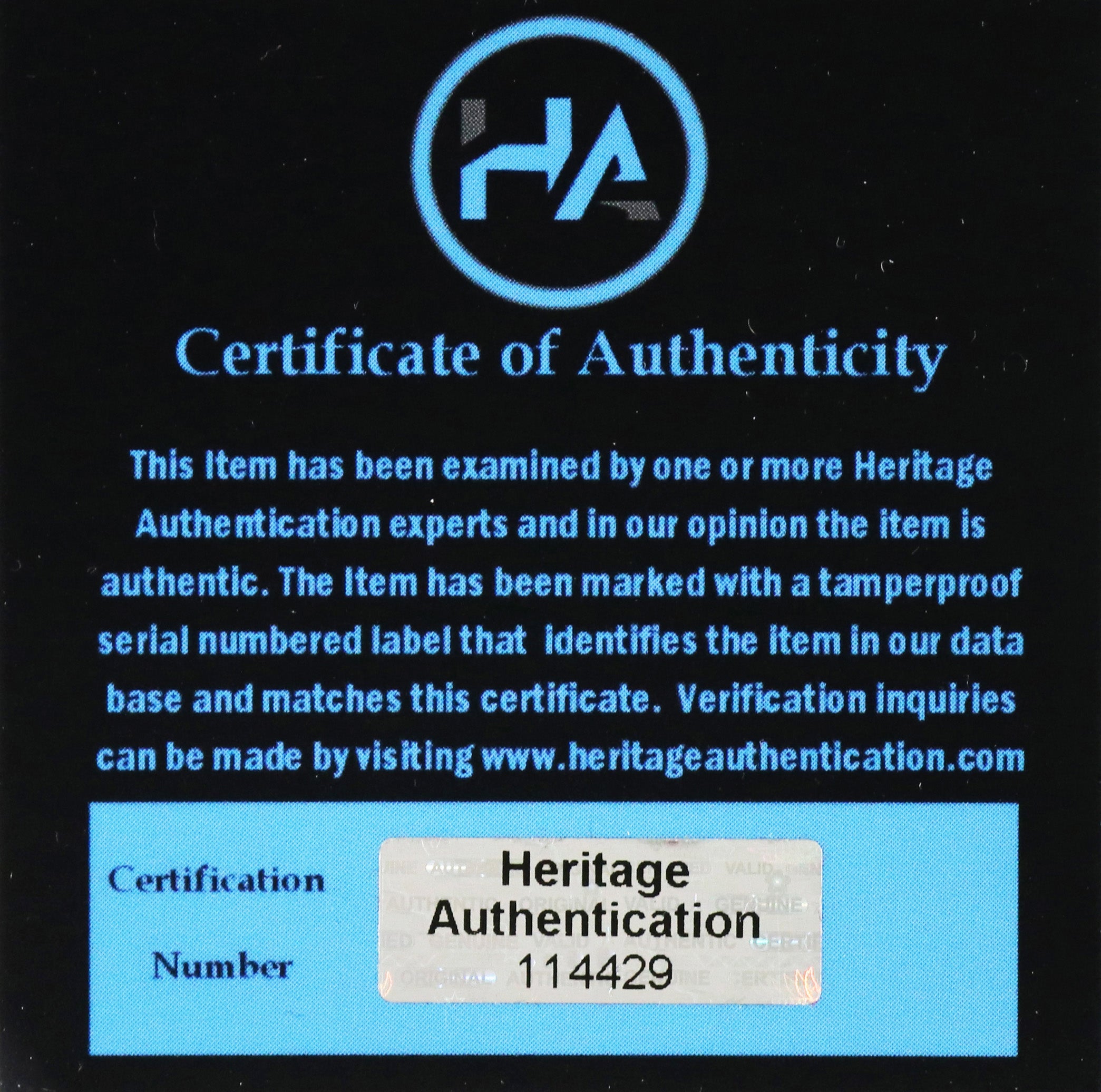 Autographed item comes with Certificate Of Authenticity (COA) Card from Heritage Authentication