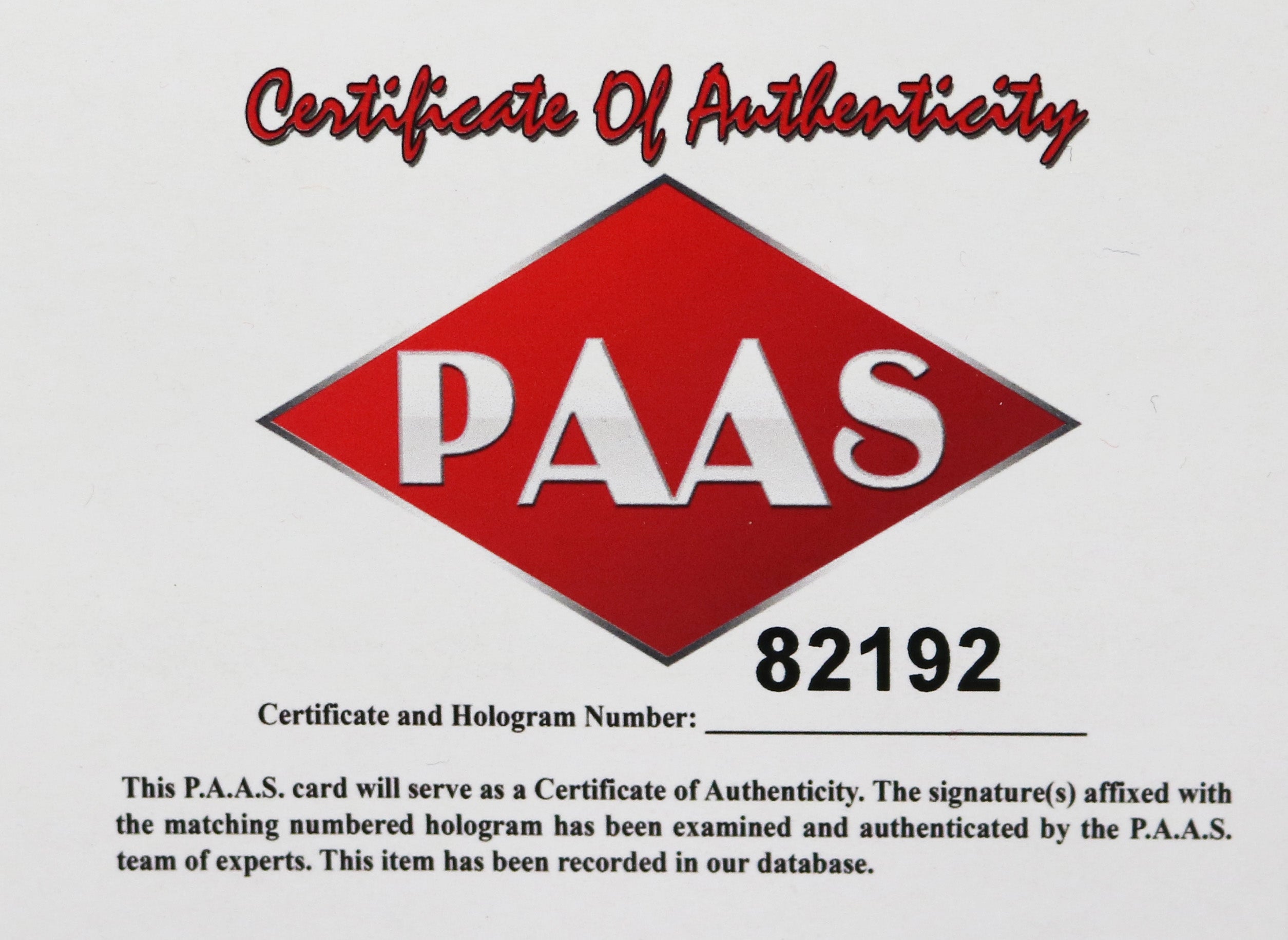 Autographed item comes with Certificate Of Authenticity (COA) Card from PAAS Professional Autograph Authentication Services